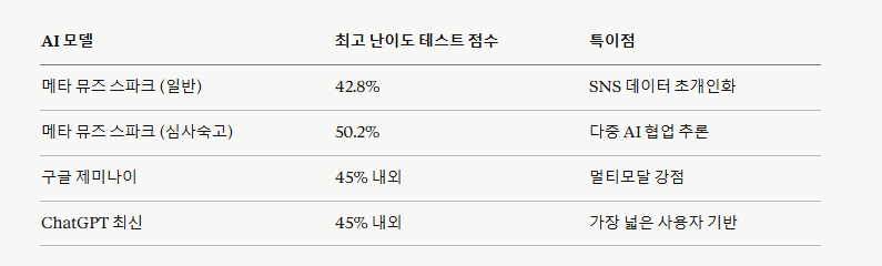 성능은 어느 수준일까요. AI 성능 지표 중 최고 난이도 테스트로 불리는 2,500개의 석박사급 문제에서 일반 모드 42.8%, 심사숙고 모드 50.2%를 기록했습니다. 현재 구글 제미나이를 앞서는 수준입니다. 심사숙고 모드는 여러 하위 AI 에이전트가 동시에 가동되어 논리 점검, 반박 사례 탐색, 추가 계산 등을 협업으로 처리합니다. 불필요한 추론 과정을 제거하는 자체 기술을 적용해 경쟁 모델 대비 10배 이상 적은 자원으로 깊은 사고를 가능하게 했습니다.
