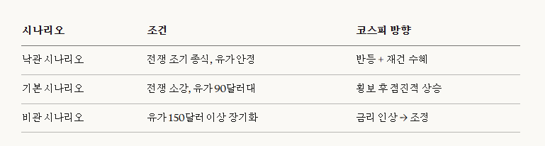 이란 전쟁이 한 달을 넘기면서 시장은 두 가지 시나리오를 동시에 바라보고 있습니다. 전쟁이 조기에 끝나면 돈이 어디로 몰릴 것인가, 그리고 전쟁이 장기화되면 금리 인상으로 이어져 시장이 얼마나 흔들릴 것인가입니다. 많은 분들이 사모대출 부실이 2008년 금융위기처럼 번지지 않을지 걱정하시고, 코스피가 폭락 가능성이 있는지도 불안해하고 계십니다.